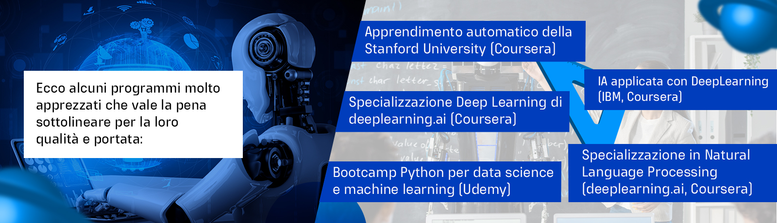 1) Corsi universitari: numerose università includono nei loro curricula corsi di AI e ML. Questi programmi offrono informazioni teoriche approfondite e spesso prevedono esercitazioni di laboratorio.